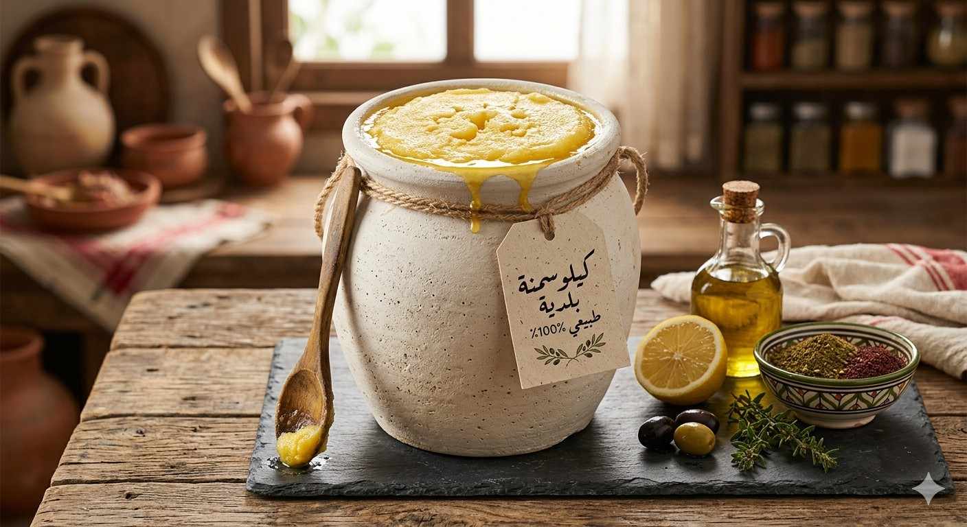 سمن بلدي معمول من زبدة بلدية طازجة من حليب الاغنام الموسمي مضاف له حواجة لون مميز نكهه اصيلة طبيعي من غير اي اضافت المكونات زبدة لادبة طازحة حوتجة سمنة \ فقط